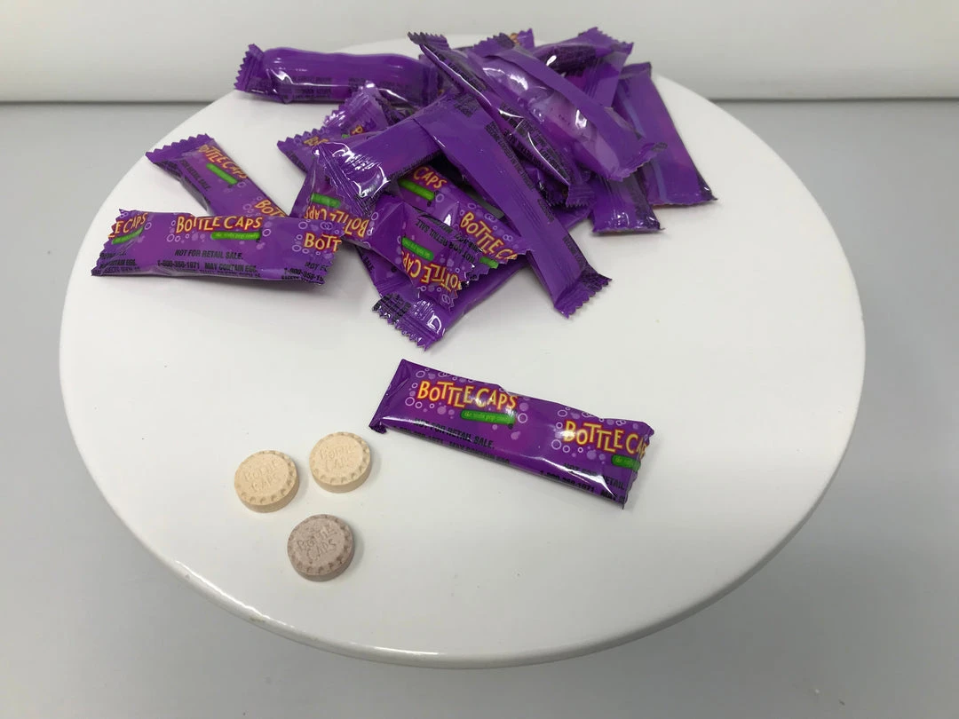 Bottle Caps Packets. Snack Size packets of Bottle Caps candy. Each packet contains 3 bottle caps. This listing is for a bulk 5 pound bag of Bottle Caps Packets.