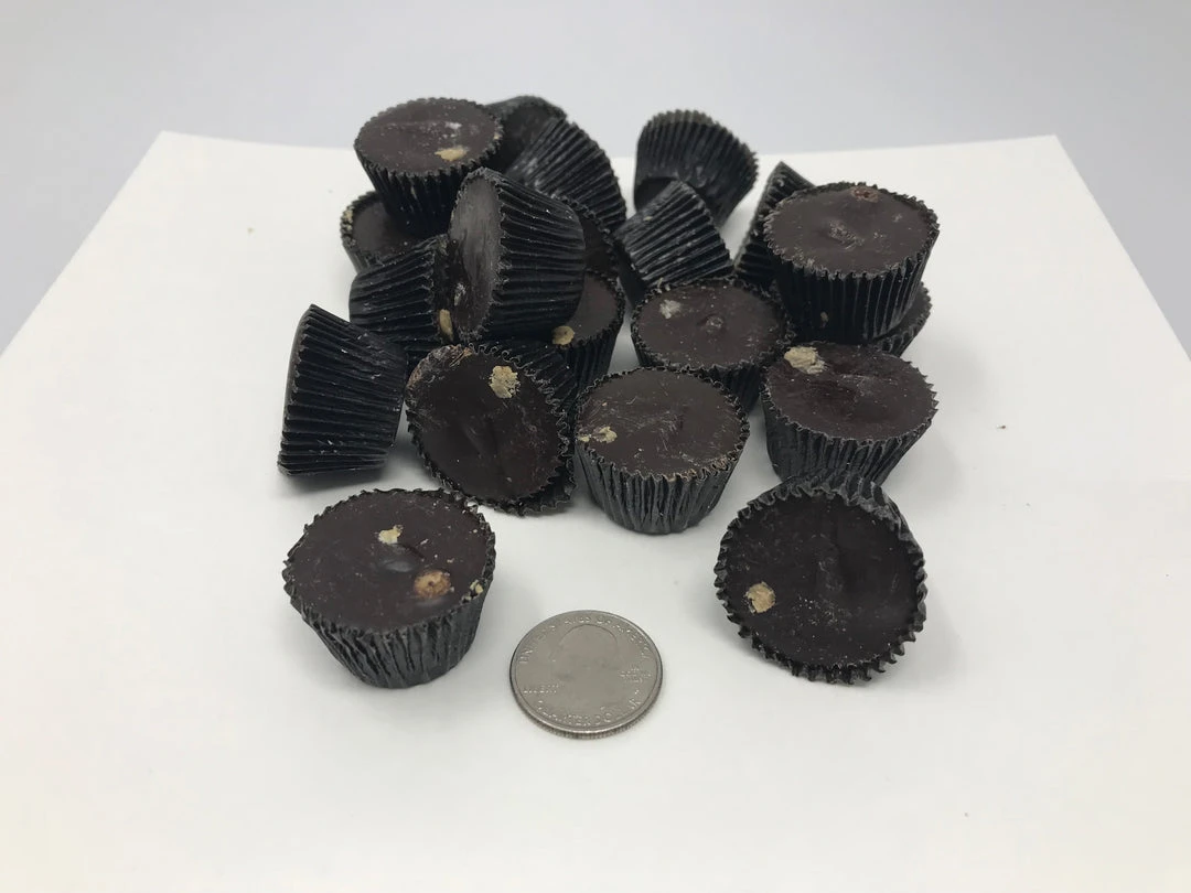 Dark Chocolate Peanut Butter Cups. Dark Chocolate filled with creamy peanut butter. These are delicious. A favorite item among our local customer base. This listing is for a bulk 5 pound bag of Dark Chocolate Peanut Butter Cups.