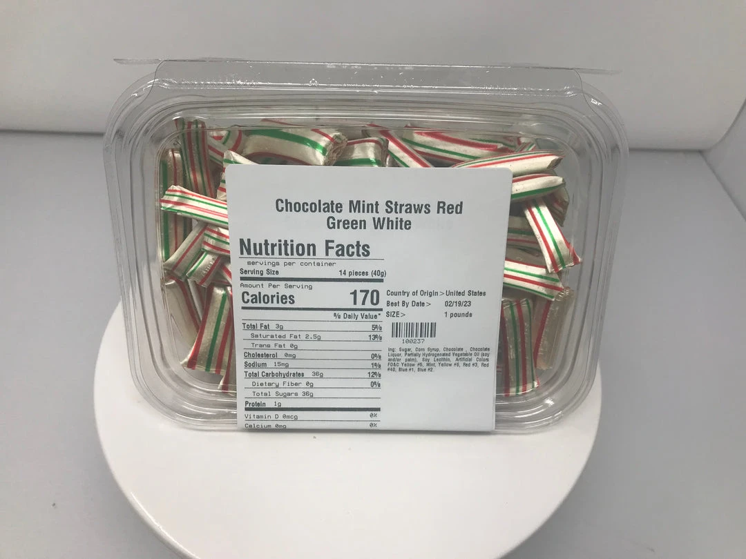 Beulah’s Candyland Old Fashion Chocolate Mint Straws 1 Pound Red Green White Striped Christmas Candy
