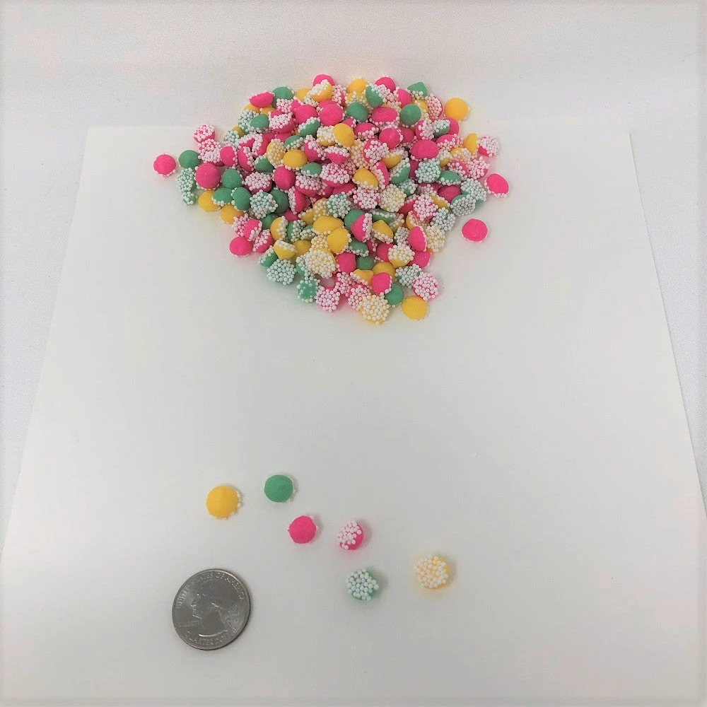 Miniature Pastel Colors Smooth and Melty Mints. A smooth, mint-flavored pastel-color drop topped with white nonpareil seeds. This listing is for a bulk 1 pound bag of Petite Smooth n Melty Mints.