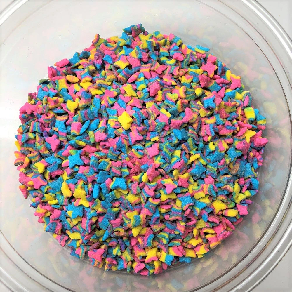 Butterfly Shapes that are multicolored. The perfect topping for your cookies, cupcakes, ice cream, or any other dessert! This listing is for a bulk 8 ounce package of butterfly shapes.